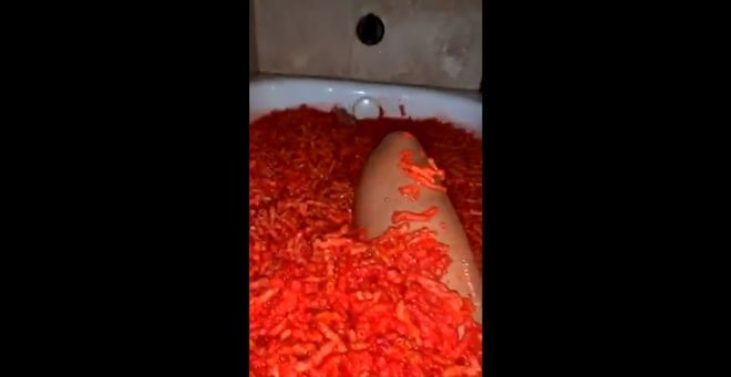 Não consigo imaginar o motivo de alguém tomar banho de Cheetos, uma vez que: a) ele deixa um fedor industrial bastante característico onde toca, b) é necessário uma mistura química agressiva para tirar a sensação de gordura dos dedos após comer um pacote desses, c) banho não serve para ficar ainda mais sujo. Mas Dakota Alexis, uma jovem americana do Arizona, achou que seria uma boa ideia e a internet ficou horrorizada
