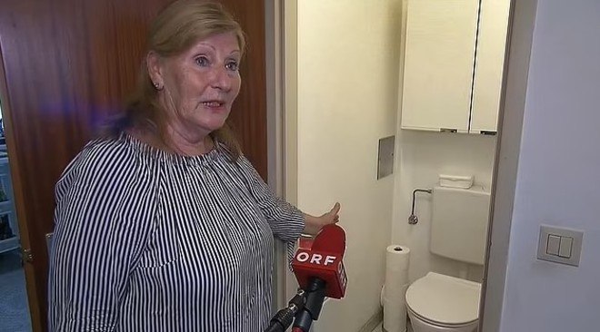 Antes de chamar a polícia para resolver a situação, Eva fotografou a invasora, tranquilamente andando no banheiro dela, em Viena, capital da Áustria