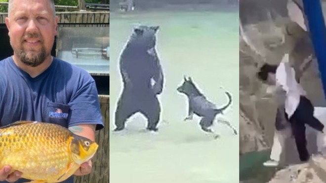 Peixes dourados gigantes pescados em rios assustam autoridades. Balanço se rompe e mulheres caem do alto de cânion de 2 km de altura. Mais que amigos: urso e cachorro brincam alegremente em quintal. A seguir, as notícias mais bizarras e lidas do HORA 7 na última semana!