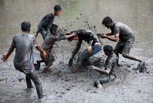 Se uma data chamada Dia Nacional do Arroz parece bem chata, a imagem mostra que não. Trabalhadores agrícolas do Nepal aproveitam o momento para brincarem na lama e, claro, plantarem arroz na época em que o país espera a chegada das monções, o período de chuvas mais intensas da região