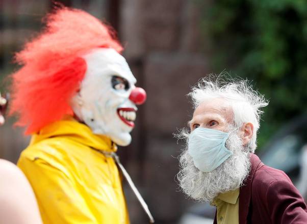 Semana após semana agências de notícias registram alguns dos momentos mais estranhos que aconteceram, em imagens esquisitas que, geralmente, nem precisam de contexto. Então, cabe a nós celebrar tais acontecimentos mostrando para você tais fotografias. A imagem acima, bastante assustadora, é mais simples do que parece: o sujeito com máscara de palhaço tenta convencer transeuntes a visitarem uma "Casa do Terror" em Kiev, capita da Ucrânia