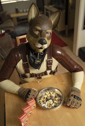 Agora o "cão humano", que é gerente de uma loja em Salford, grande Manchester, liberta seu lado cachorro regularmente
