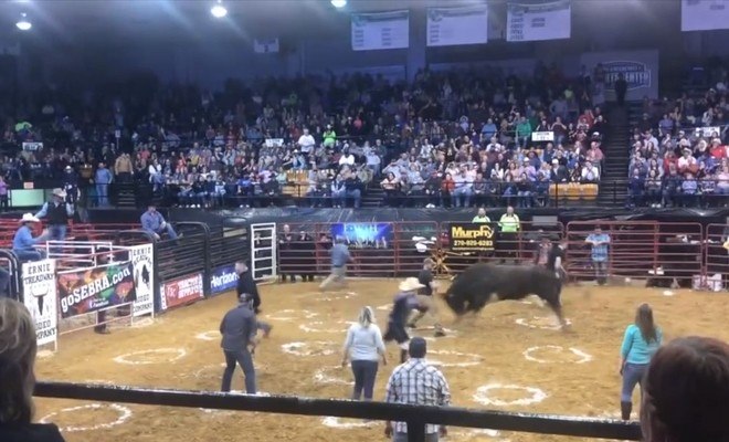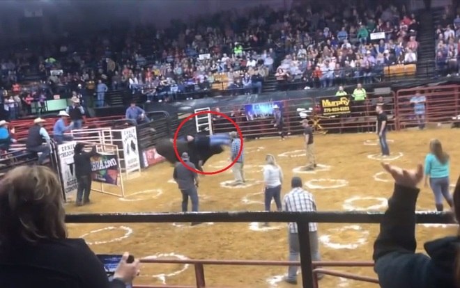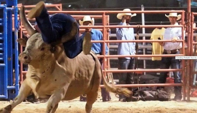 Com a filha de 10 anos nas arquibancadas, William Dunn, 40, e a esposa, Chrystal, assinaram um documento abrindo mão de qualquer tipo de processo, mesmo em caso de morte. Antes disso, o apresentador de um rodeio no Kentucky, EUA, havia convidado as "pessoas estupidas" a se voluntariarem para o "Cowboy Pinball" com a chance de ganhar R$ 400. A brincadeira se tornou moda no país e preocupa os especialistas por ser "particularmente perigosa"