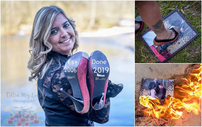 A recém-divorciada Marie Lollis, 47, virou sensação na internet após organizar um ensaio fotográfico para celebrar sua separação. A mulher e esmagou um porta-retrato e queimou fotos de seu casamento, tudo para mostrar que superou o fim do relacionamento