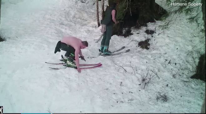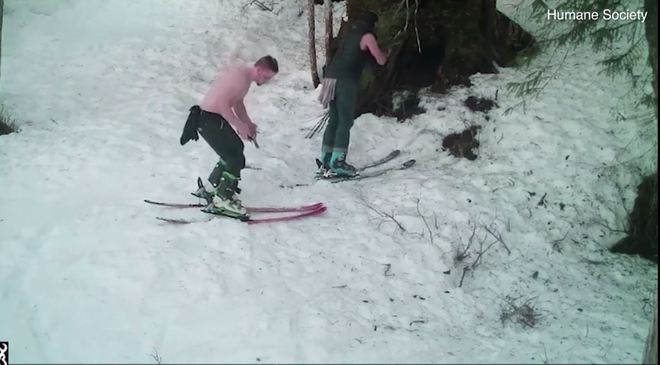 Os dois não sabiam que uma câmera do departamento de conservação gravou toda a ação