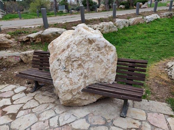 No meio do banco tinha uma pedra. Tinha uma pedra no meio do banco