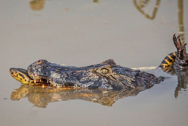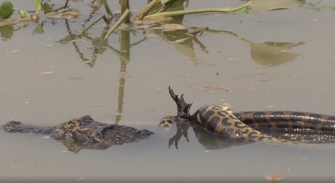 Isso fez com a anaconda se soltasse da presa e fugisse pelo rio. Mas, infelizmente, já era tarde demais para a jacaretinga, que não resistiu aos ferimentos