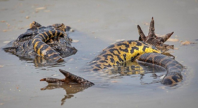 Segundo o fotógrafo, a anaconda prendeu o rival de maneira tão brutal que quebrou suas pernas durante o processo