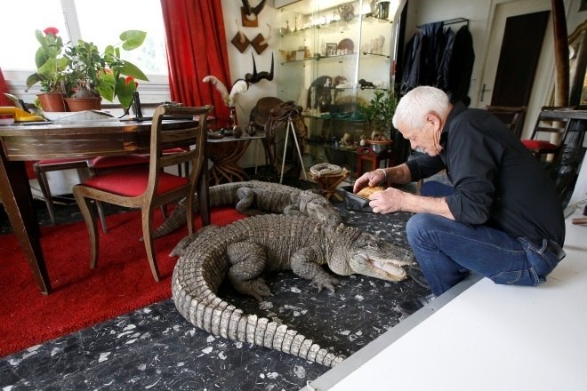 Philippe Gillet é simpático senhor de 67 anos que vive com mais de 400 répteis em sua casa no rio Loire, na França. Tem de tudo: cobras, uma tartaruga de 50 quilos e até dois jacarés de dois metros, um deles dorme na sua cama
