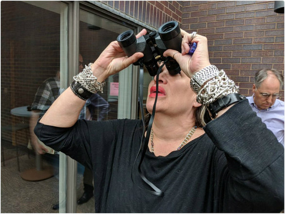 ... com direito a descanso nos parapeitos das janelas e cliques de funcionários que trabalham no local