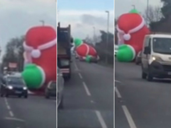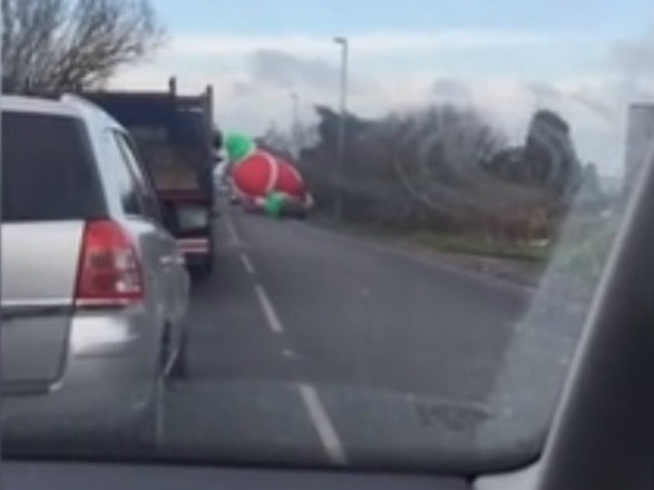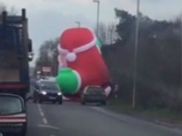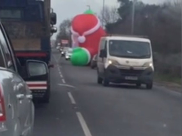 "Tráfego parcialmente bloqueado e lento nos dois sentidos da estrada Cromwell, em Wisbech, devido a um grande e Papai Noel inflável"