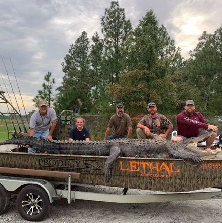 Derrick Snelson acha que a adolescência é a melhor época de aprender a caçar. Ele e a filha de Shelby, de 14 anos, posaram com uma foto ao lado de um crocodilão gigante
