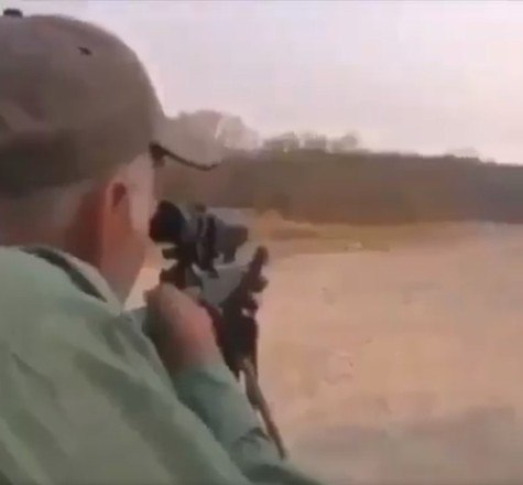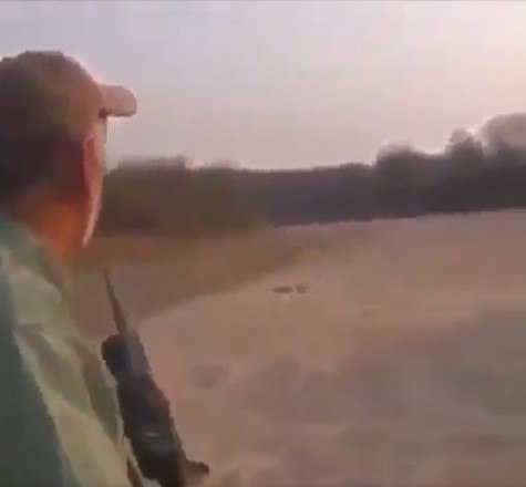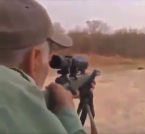 Enquanto isso, a dupla de homens festeja a "conquista": "excelente disparo, senhor! É um belo animal!", afirmou o assistente
