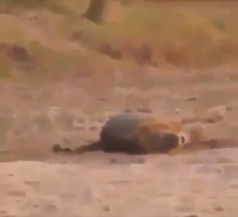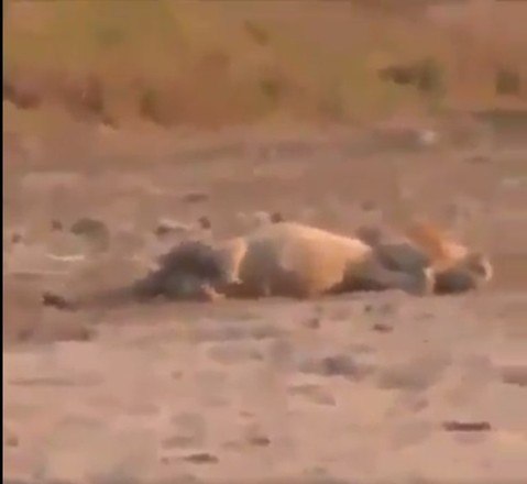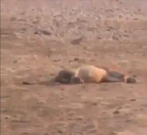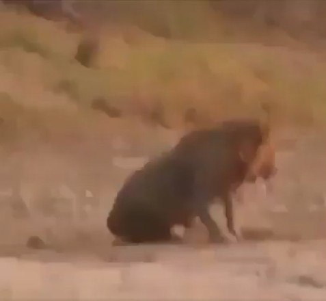 No momento de dor e confusão, o animal ainda consegue reunir forças para se levantar