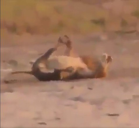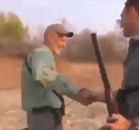 Eles se cumprimentam, a "brincadeira" dos homens está encerrada. "Eles são muito corajosos e tem um excelente espirito esportivo", publicou ironicamente a conta Protect Wildlife