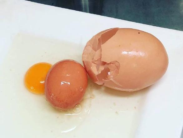Scott Stockman contou ao tabloide Daily Mail que ao quebrar o ovo desproporcional, constatou a bizarrice do conteúdo: "É uma completa aberração da natureza e muito raro ver um ovo dentro de outro"