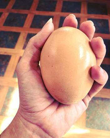 Stockman conta que trabalha há anos com ovos e nunca havia visto um tão grande. A raridade pesava cerca de 176 gramas e o fato de abrigar outro ovo dentro chamou a atenção de especialistas