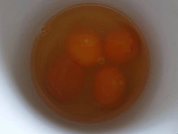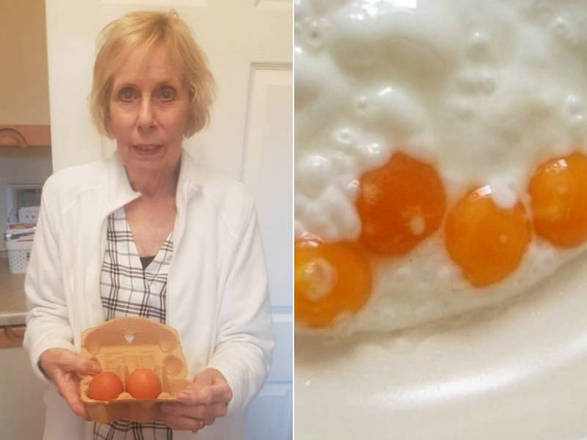 Uma septuagenária britânica foi pega de surpresa ao quebrar um ovo e se deparar com quatro gemas dentro dele