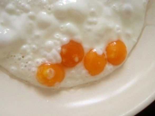 De acordo com o Serviço Britânico de Informação sobre Ovos, a chance de descobrir gemas quadruplicadas é de uma em 11 bilhões