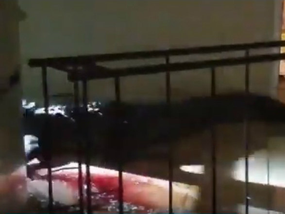 Ao descer para o andar térreo, se deparou com um jacaré gigantesco no chão da cozinha, sobre uma garrafa de vinho quebrada