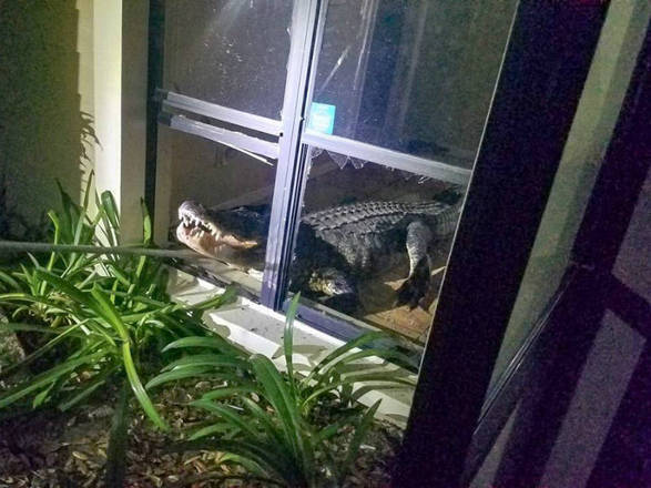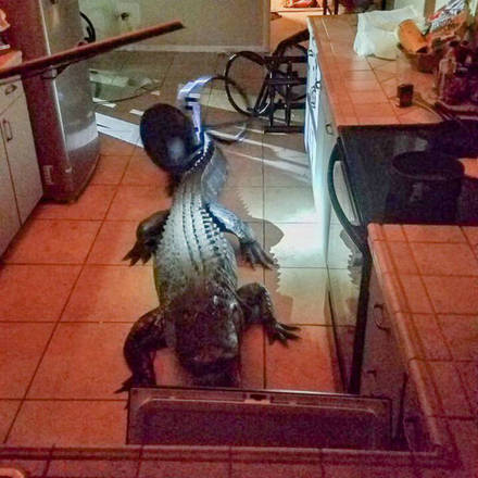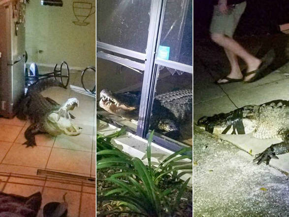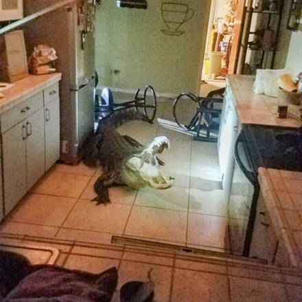 Um jacaré de mais de três metros de comprimento invadiu a cozinha de uma casa em Clearwater, na Flórida, e deixou uma idosa de 77 anos em pânico