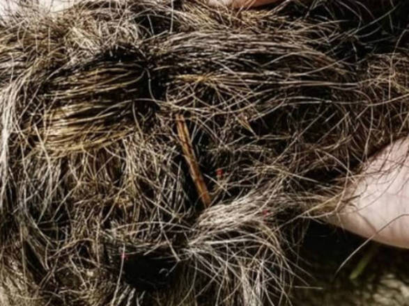 "As caudas foram quebradas e trançadas, além de terem sido amarradas por um objeto feito por humanos"