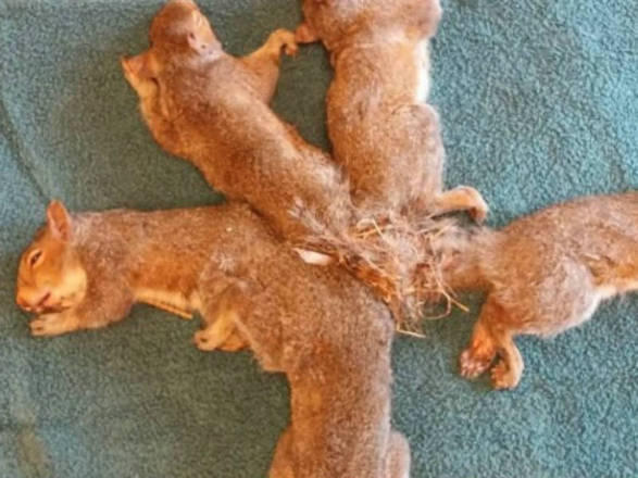 Quatro filhotes de esquilos foram encontrados com as caudas amarradas entre si sobre uma linha de trem de Connecticut, nos EUA
