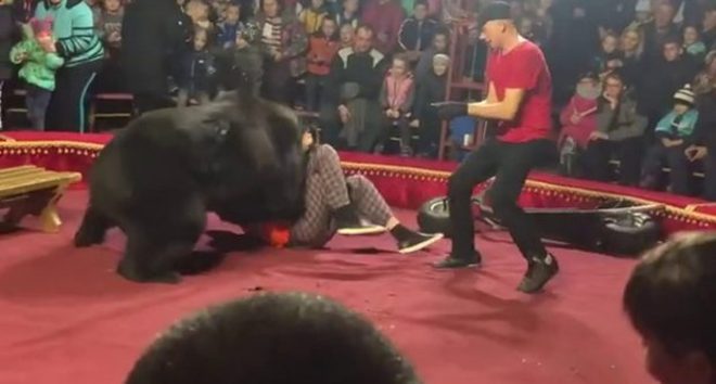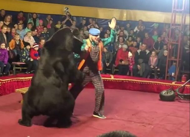 Um domador perdeu o controle de sua apresentação em um circo de Olonest, na Rússia, e acabou sendo brutalmente atacado por um urso. "Meus joelhos ainda estão tremendo. Eu fiquei em choque, a ausência de uma cerca me fez temer também pela segurança da platéia", afirmou Galina Gurieva, 27, a responsável pelas imagens