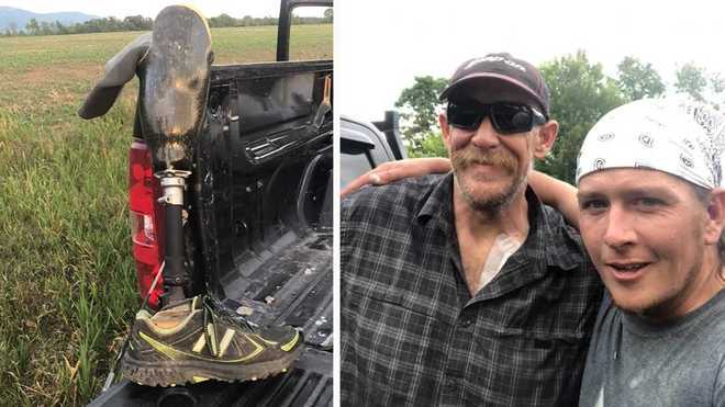 Ele disse estar agradecido por ter encontrado a perna sem atropelá-la com uma máquina durante a colheita do outono