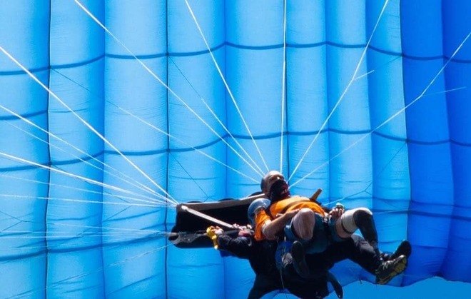 Chris Marckres, um paraquedista de Vermont, Estados Unidos, perdeu a perna protética durante um salto e a recuperou, graças a um fazendeiro que a viu em um campo de soja