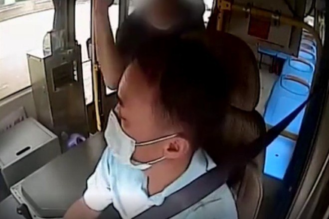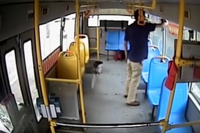 O incidente foi registrado pela câmera de bordo de um coletivo que atende a cidade de Guangzhou, na China