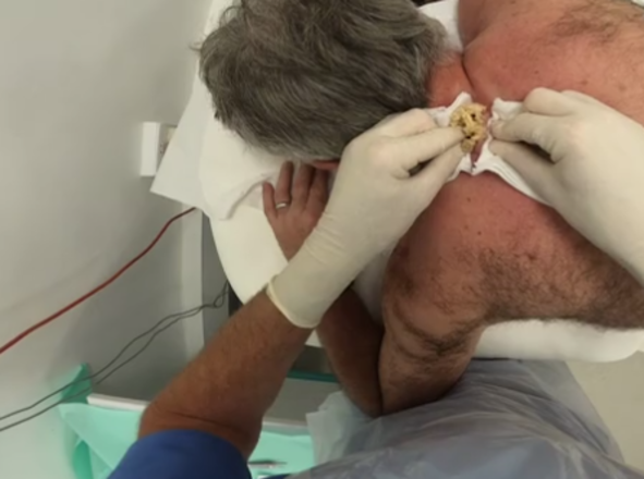 Um cisto do tamanho de uma bola de ping pong cresceu nas costas de um homem durante 10 anos e precisou ser removido através de um procedimento cirúrgico, que foi gravado e se tornou uma atração na Internet